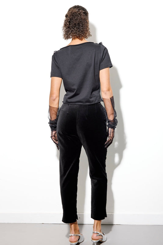 Black velvet trousers