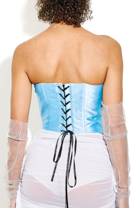 Blue silk corset with front detail