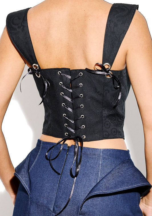 Jacquard black corseted top